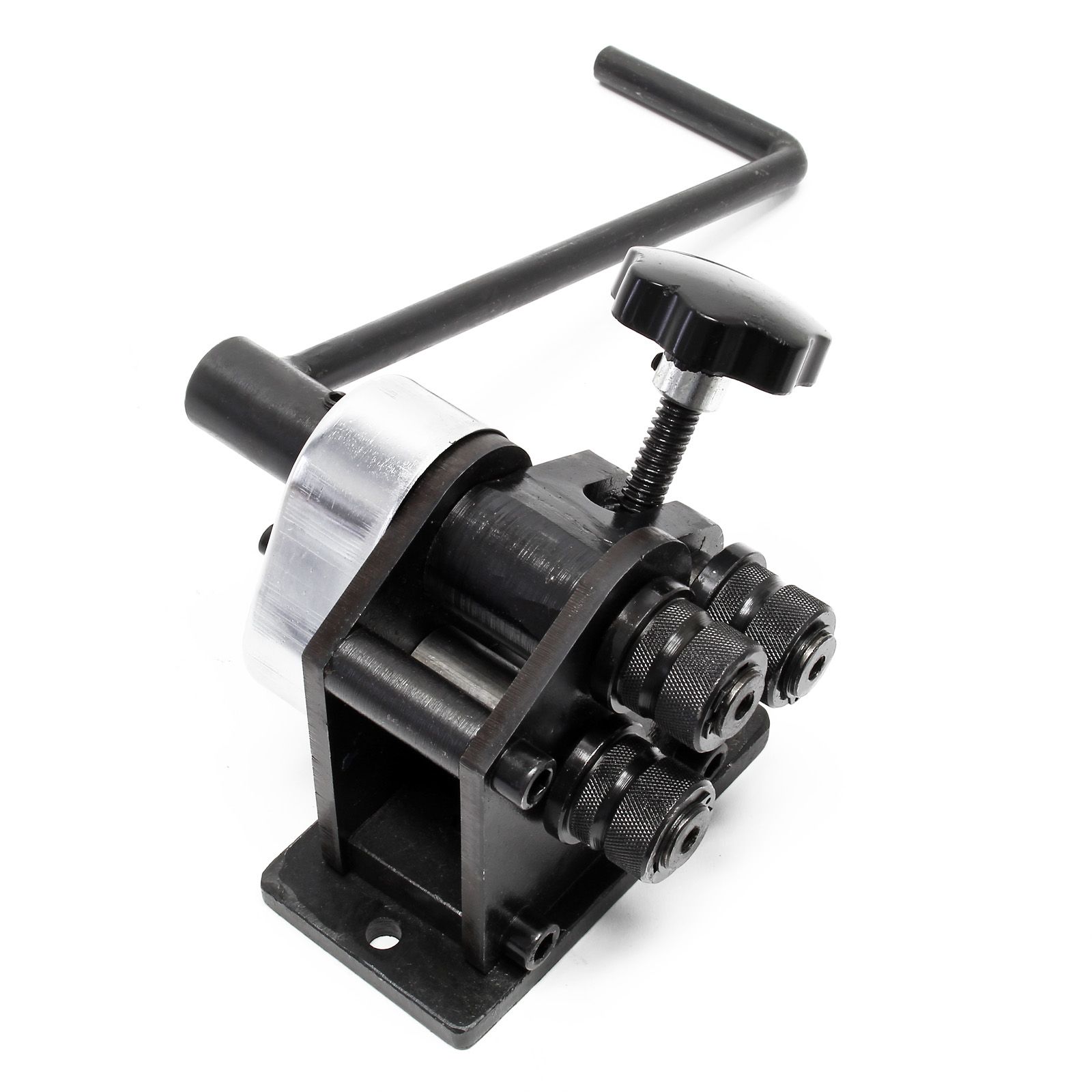 Met deze rolbuigmachine kun je gemakkelijk plat en rond staal bewerken, bijvoorbeeld om rondingen te plooien of carrosseriedelen te voorzien van een hoek. De buigradius kan traploos worden ingesteld door aan de geribbelde schroeven te draaien.