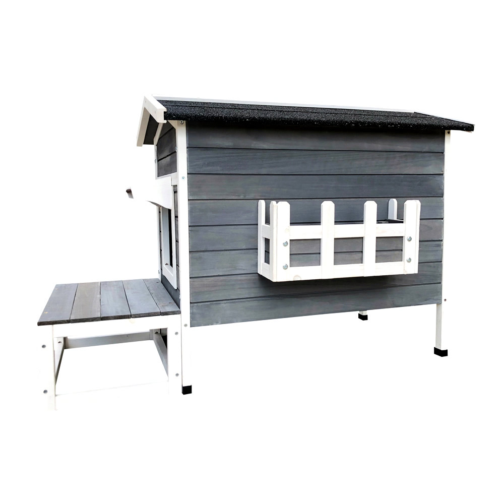 - De bloembak aan de zijkant maakt het mooie ontwerp van het kattenhuis compleet