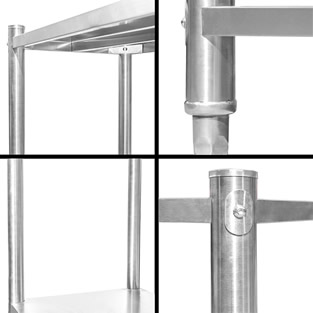 - Dankzij de solide roestvrijstalen constructie is de stelling gemakkelijk schoon te maken
