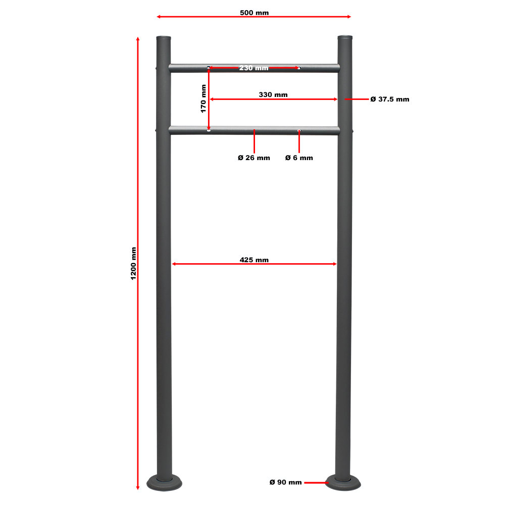 - Voetstuk eenvoudig aan de grond te verankeren d.m.v. meegeleverde pluggen