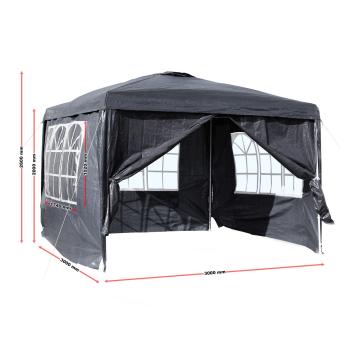 Deze partytent is ideaal voor feesten, kamperen, festivals of gewoon voor wat extra schaduw. Met zijn afmetingen van 3 x 3 meter biedt hij voldoende ruimte voor bankjes, tafels, koelboxen en meer. Dankzij de drie afneembare zijelementen met raampjes kan de partytent individueel worden ingezet: Indien de partytent bescherming moet bieden tegen weersinvloeden, kunnen alle drie de zijden worden vastgezet. Wanneer uitsluitend schaduw gewenst is, kunnen de zijstukken worden verwijderd. Op die manier zorgt het dak voor schaduw en is er tegelijkertijd voldoende luchtcirculatie rondom.