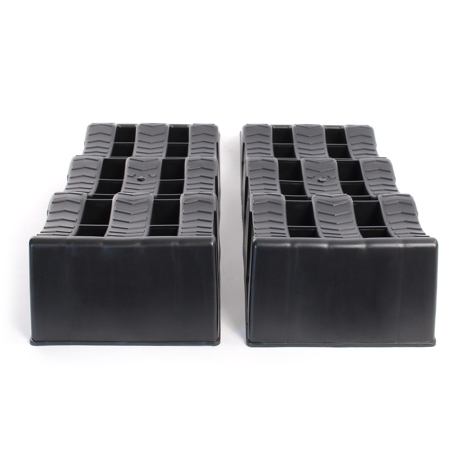 - De oprijblokken zijn slipvast en bieden een veilige en optimale grip voor alle bandenprofielen